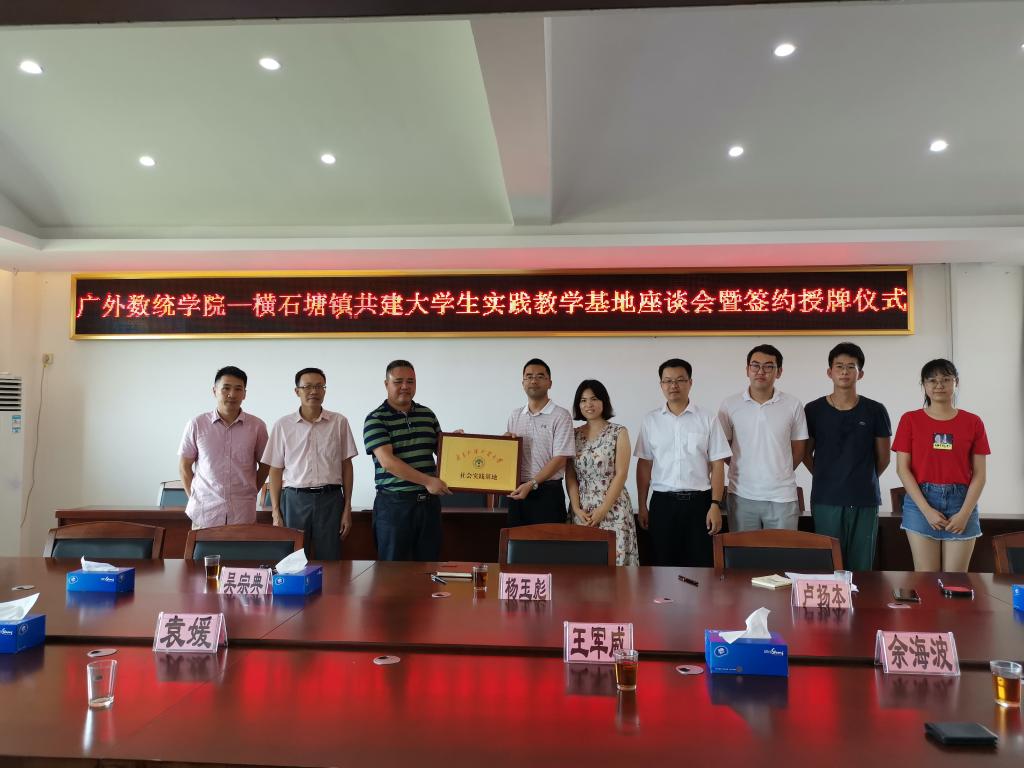 学院一行受到横石塘镇党委杨玉彪副书记、卢扬本副镇长、吴宗典副镇长的热情接待,双方在镇政府召开座谈会。杨玉彪副书记详细介绍了横石塘镇的具体情况,并对我校新葡萄8883官网AMG师生一行表示热烈的欢迎,他表示大学生暑期社会实践活动是学生们的一次实践锻炼,镇政府一定会大力支持。王军威院长对横石塘镇为我校学生社会实践的支持表示衷心感谢,并希望学生社会实践队伍能考虑到当地的实际需求,将专业知识运用到义教、调研工作中,达到在实践中受教育、长才干的目的。双方签署了《共建大学生社会实践基地协议书》,并举行了社会实践基地挂牌仪式。