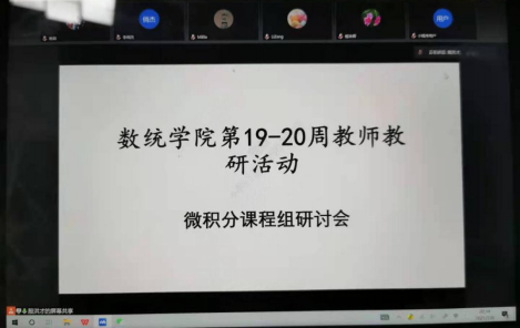 与会教师积极分享了本学期《高等数学》教学经验,交流教学过程遇到的困难,提出可以通过录制习题课微课的形式将线上教学与线下教学结合起来,进一步改进教学效果。